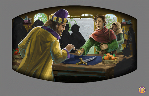 Art for the packaging designed so it can stand next to the basic game box and create a full scene, cards, and Guild Mats.